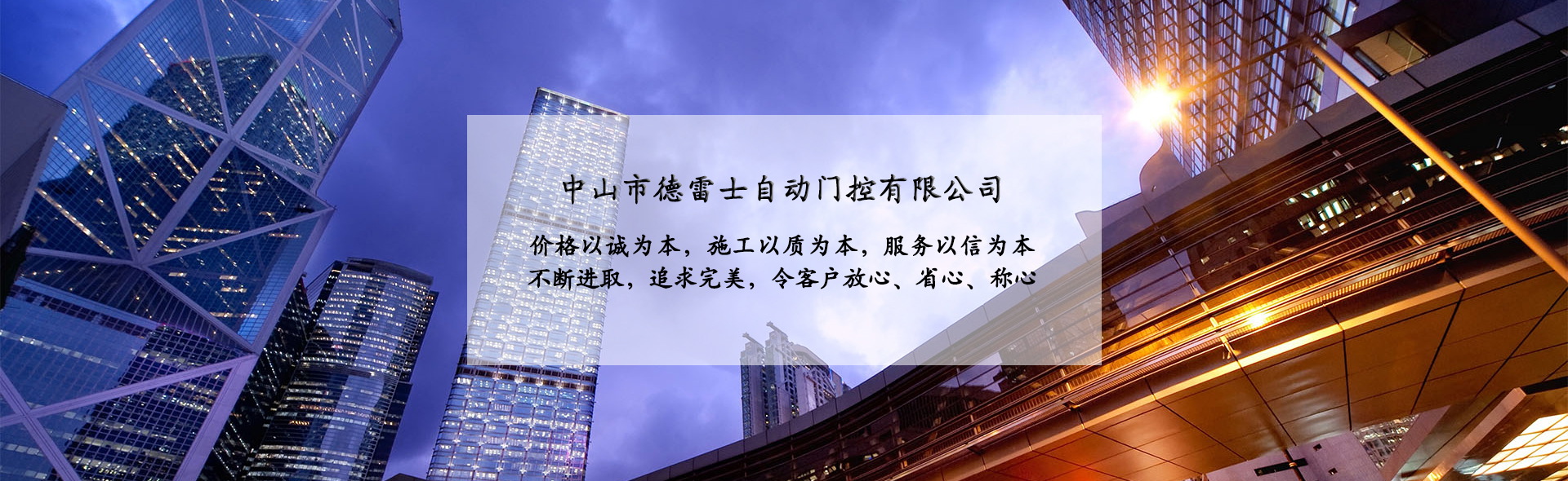 中山市德雷士自動(dòng)門控有限公司代理中山松下自動(dòng)門、中山松下感應(yīng)門、及其旗下品牌松下(Panasonic)自動(dòng)門、旋轉(zhuǎn)門、型材門、松下門禁系統(tǒng)、地彈簧、閉門器等系列產(chǎn)品。 松下Panasonic一直致力于憑借不斷創(chuàng)新的技術(shù)營(yíng)造為各個(gè)區(qū)域的用戶做出最佳解決方案,在自身領(lǐng)域處于領(lǐng)先地位;松下自動(dòng)門控系統(tǒng)廣泛應(yīng)用于寫字樓、機(jī)關(guān)單位、大型企業(yè)、學(xué)校、醫(yī)院、智能小區(qū)等領(lǐng)域。在用戶心中有良好的口碑及信譽(yù)度。 松下(Panasonic)自動(dòng)門控系統(tǒng)包含:自動(dòng)感應(yīng)門、旋轉(zhuǎn)門、90度平開門、圓弧型門、重疊門、緊急逃生門、醫(yī)用門、氣密門、鋁合金型材門、松下門禁系統(tǒng)、家庭智能鎖、地彈簧、閉門器等系列產(chǎn)品。 德雷士自動(dòng)門控有限公司從事智能門控十余載,精英匯聚;公司具有完善的管理體系,對(duì)每位客戶都進(jìn)行檔案管理,跟蹤服務(wù),定期回訪,終生維修。提供急修12小時(shí)解決,一般維修48小時(shí)解決的服務(wù),完全能解決您的后顧之憂。 公司的質(zhì)量方針 科學(xué)管理確保的工程質(zhì)量 真誠(chéng)服務(wù)贏得客戶信譽(yù) 持續(xù)創(chuàng)新打造企業(yè) 公司的服務(wù)宗旨 價(jià)格以誠(chéng)為本,施工以質(zhì)為本,服務(wù)以信為本。 實(shí)實(shí)在在做人,老老實(shí)實(shí)做事,以我們的辛苦換來(lái)客戶滿意的微笑,這就是我們的追求! 公司的目標(biāo) ...